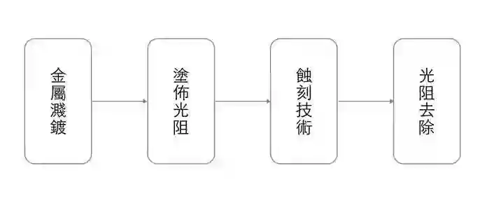 金属溅镀:将欲使用的金属材料均匀洒在晶圆片上,形成一薄膜。