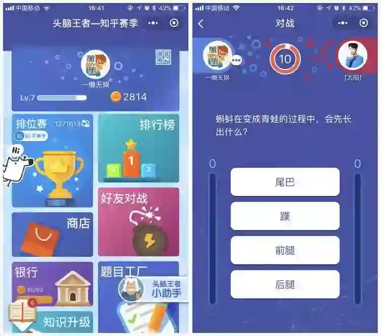 用段位提升满足用户成就感,通过好友对战吸纳新的用户,知识竞答在小程序中有了新的玩法。