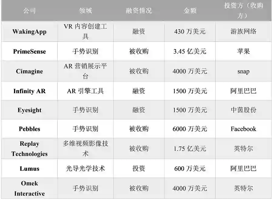在这样一个创新的国家,自然少不了这几年热起来的VR/AR技术,经常会在头条上看到这样的新闻:“来自以色列的XX公司获得国内XXX的投资。”确实,国内外有不少巨头将眼光瞄准了以色列的这些VR/AR公司,为此,镁客君做了一个统计表格: