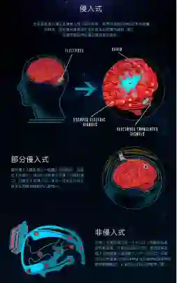 ▲脑机接口形式一般以信息采集方式为主划分:通常被分为侵入式、半侵入式、非侵入式(脑外)(图片来源:futurism.com翻译:硅谷live)
