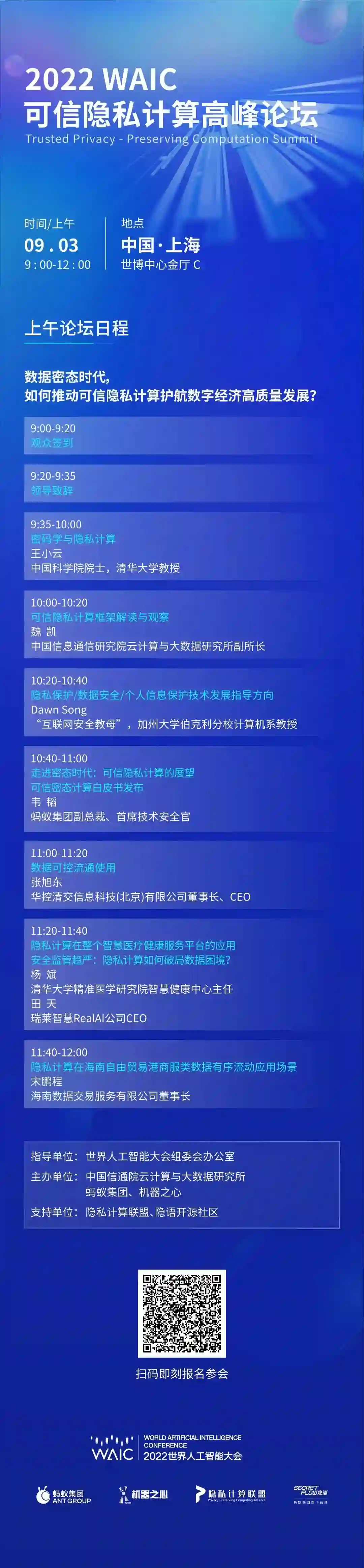 「WAIC 2022 · 可信隐私计算高峰论坛」全日程