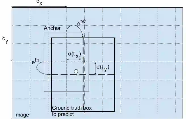 其中,bx, by, bw, bh是我们预测的x,y中心坐标,宽度和高度。