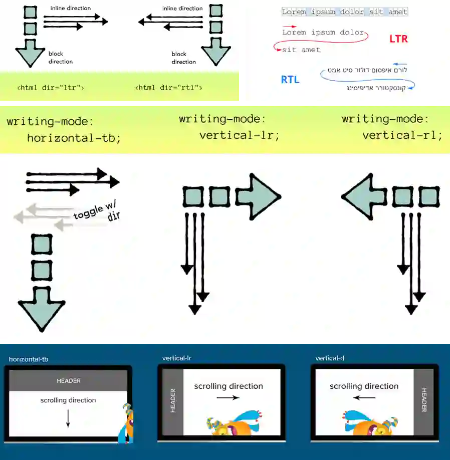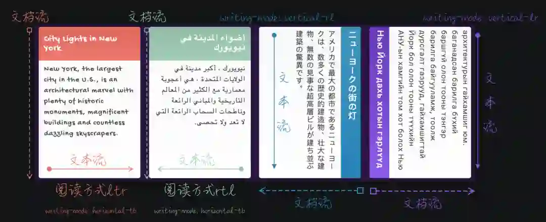内联轴:主要定义网站的文本流方向,也就是文本的阅读方式,CSS的direction或HTML的dir会影响内联轴的方向。