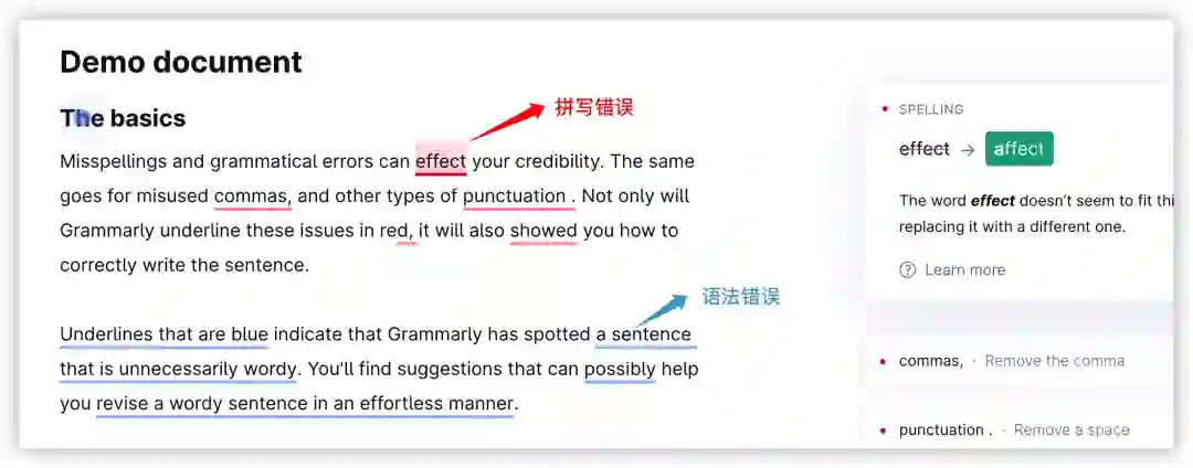 ::grammar-error:浏览器为语法错误的文本段添加样式。