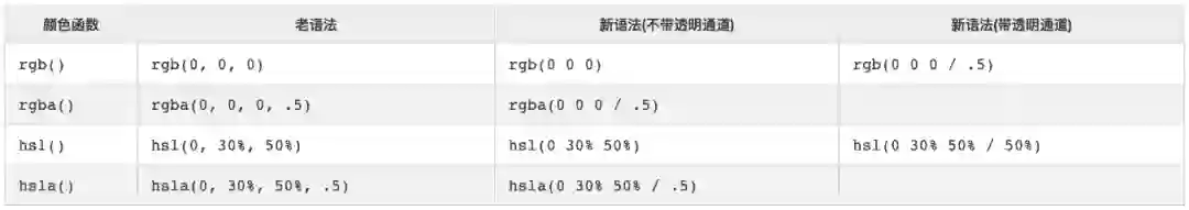 <hwb()> :HWB(白色-白色-黑色的缩写)是另一种指定颜色的方法,类似于HSL,它描述了一开始的色调,然后是一定程度的白色和黑色混合到基本色调