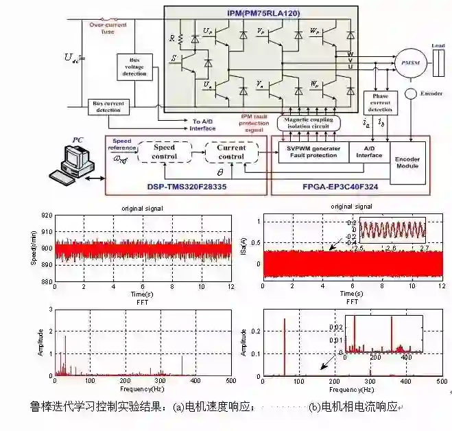鲁棒迭代学习控制频谱分析:(a)速度频谱分析对比;(b) 相电流频谱分析对比