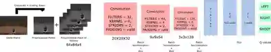 这些帧图片将使用三个卷积层进行处理。这些网络层可以允许agent发现图片之间的空间关系。