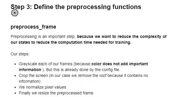 预处理是非常重要的一步,我们希望减少状态的复杂度,以帮助减少训练过程所需的计算时间。