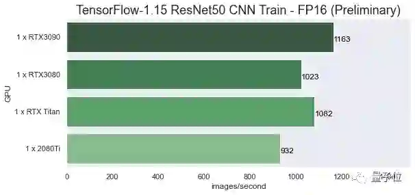 而在FP16任务上,RTX 3090每秒可处理1163张图片,Titan RTX每秒可处理1082张图片,性能仅提升7.5%。