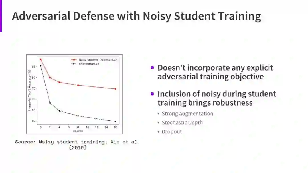 Improving adversarial performance with EfficientNet [4] and its variants like Noisy Student Training [5] and AdvProp [6]