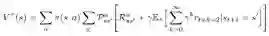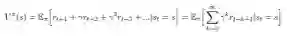 状态价值函数描述了在执行一个策略时的状态值。这是一个从状态s开始执行我们的策略Π所得到的预期回报: