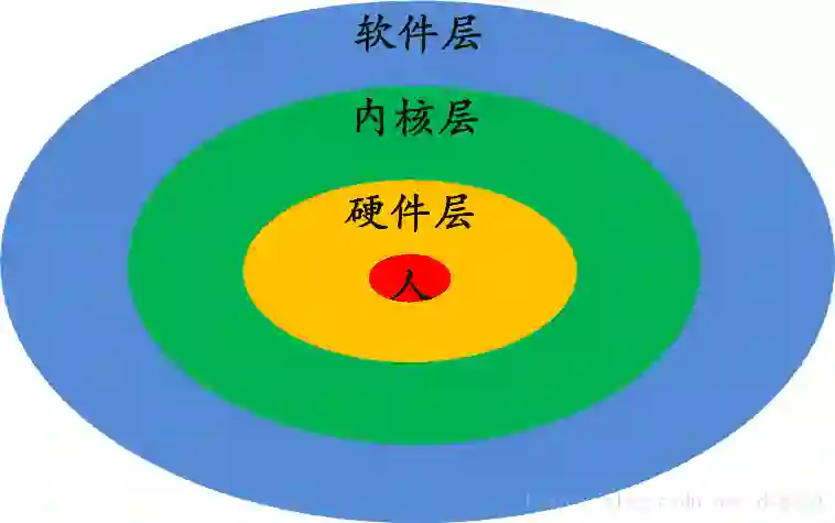 为了帮助理解上述的文字,我特意作图一张,希望能解释清楚这些终端之间的关系以及弄明白它们的工作流程。为了让图画的更加紧凑,避免横向网络吧图拉的过长而不好看,我这里采用了环形解释法,类似Intel早先的Ring1,Ring2,Ring3,我把最内层视作硬件(比它更里面的还有叫做人的东西),中间层视作内核,最外层视作软件。