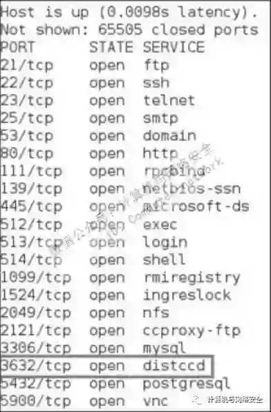 我们通过网上资料确定distccd服务存在漏洞,可被用来执行任意指令。这个服务是一种分布式的编译工具,可协调多台主机协助完成大规模的编译任务。