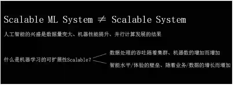 人工智能的兴起是计算能力、机器学习以及分布式计算发展的结果。在实际的工业界之中,我们需要一个可扩展的机器学习系统(Scalable Machine Learning System),而不仅仅是一个可扩展系统(Scalable System)。