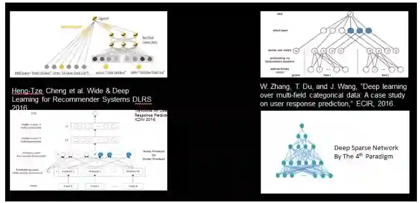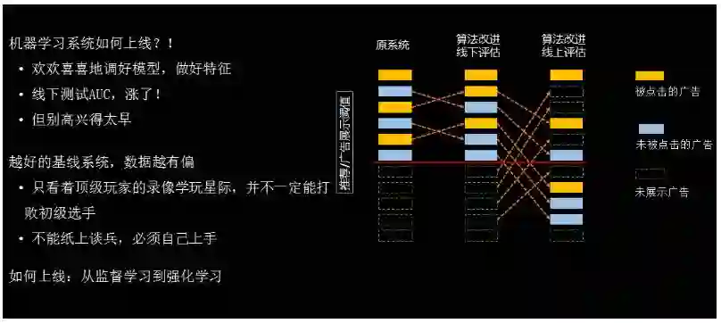 再跟大家分享一点,宽度和深度其实是两条路数、两个派系。在我们想替换的时候,就会发现深度模型很难把它替换成宽度模型,或者宽度模型很难把它替换成深度模型。因为如果我们真正把它应用于线上系统时,其实是一个强化学习问题,而不只是简单的机器学习问题。你在线上使用的时候会发现,你碰到的数据和你线下训练的数据是不一样的,你的基线模型效果越好,你的数据是越有偏差,训练出来的模型越难真正在线上产生好的效果。所以说,我们需要有很多机制让这个事情做得更好,包括更多的强化学习等方式。