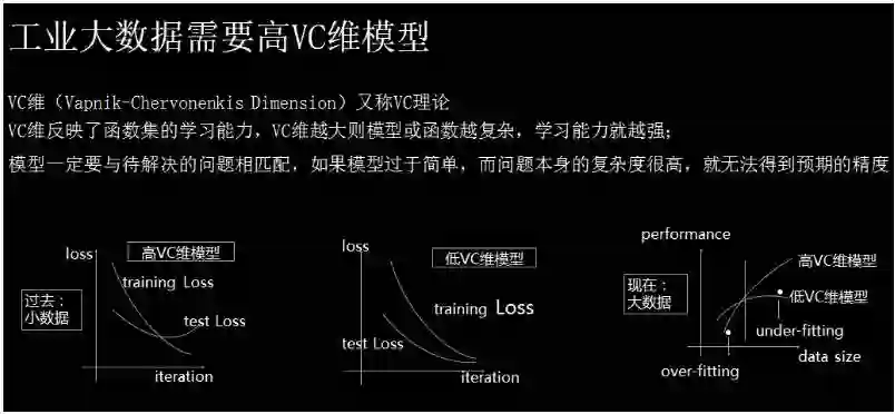 但随着如今数据量剧增,我们发现低 VC 维模型效果并不理想,但高的 VC 维模型的性能在不断上升。因此,在我们有越来越多数据时,要关心的是欠拟合而不是过拟合,要关心的是怎样提高 VC 维让模型更加聪明。