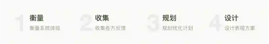 满意度问卷已经帮助我们客观地了解到用户对于系统的满意程度,也有了一定的优化重点,但对于落地方案来说,还是比较笼统而零散。作为一次完整的体验提升优化,还需要站在更全局的角度去仔细审视系统的每一个环节。