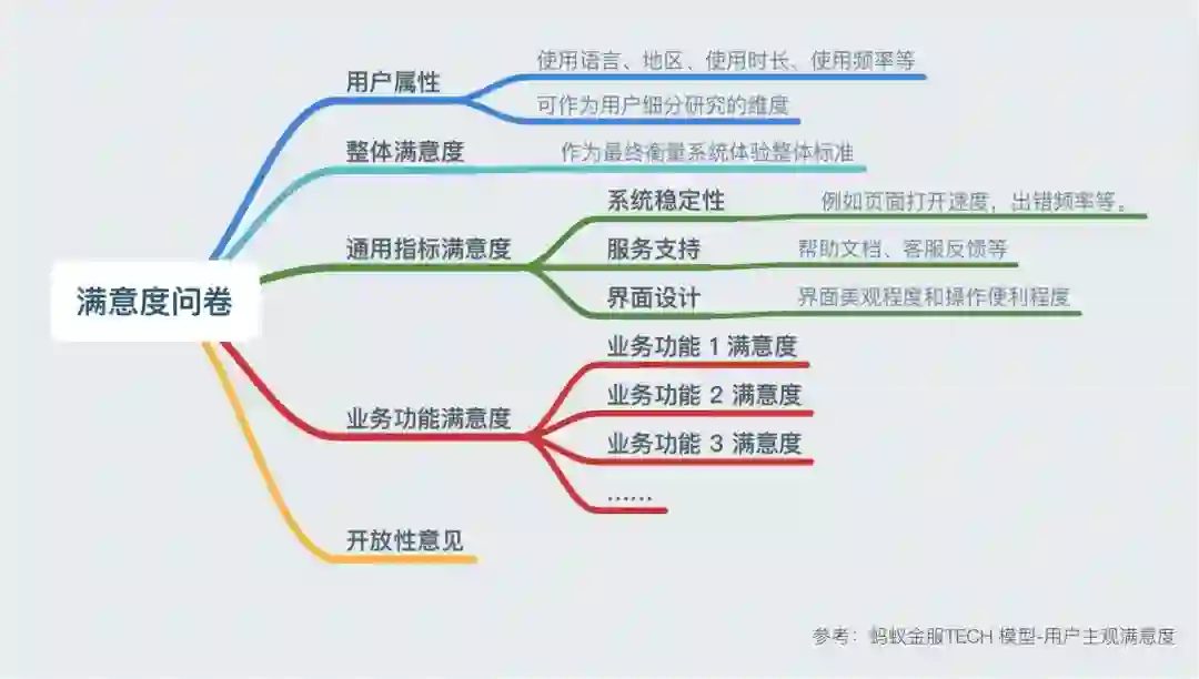 满意度问卷,把抽象的体验用用户的主观评分来衡量,具象到某个数值;