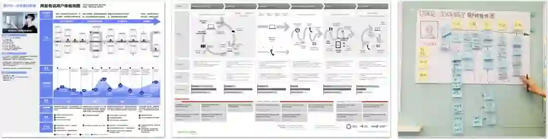 用户体验地图是产品设计中常用到的一种设计方法,它让我们平时零散获得的抱怨、吐槽,变成有序的阶段体验,直观地呈现出用户在每一个目标任务下的行为、思考、痛点和机会点。