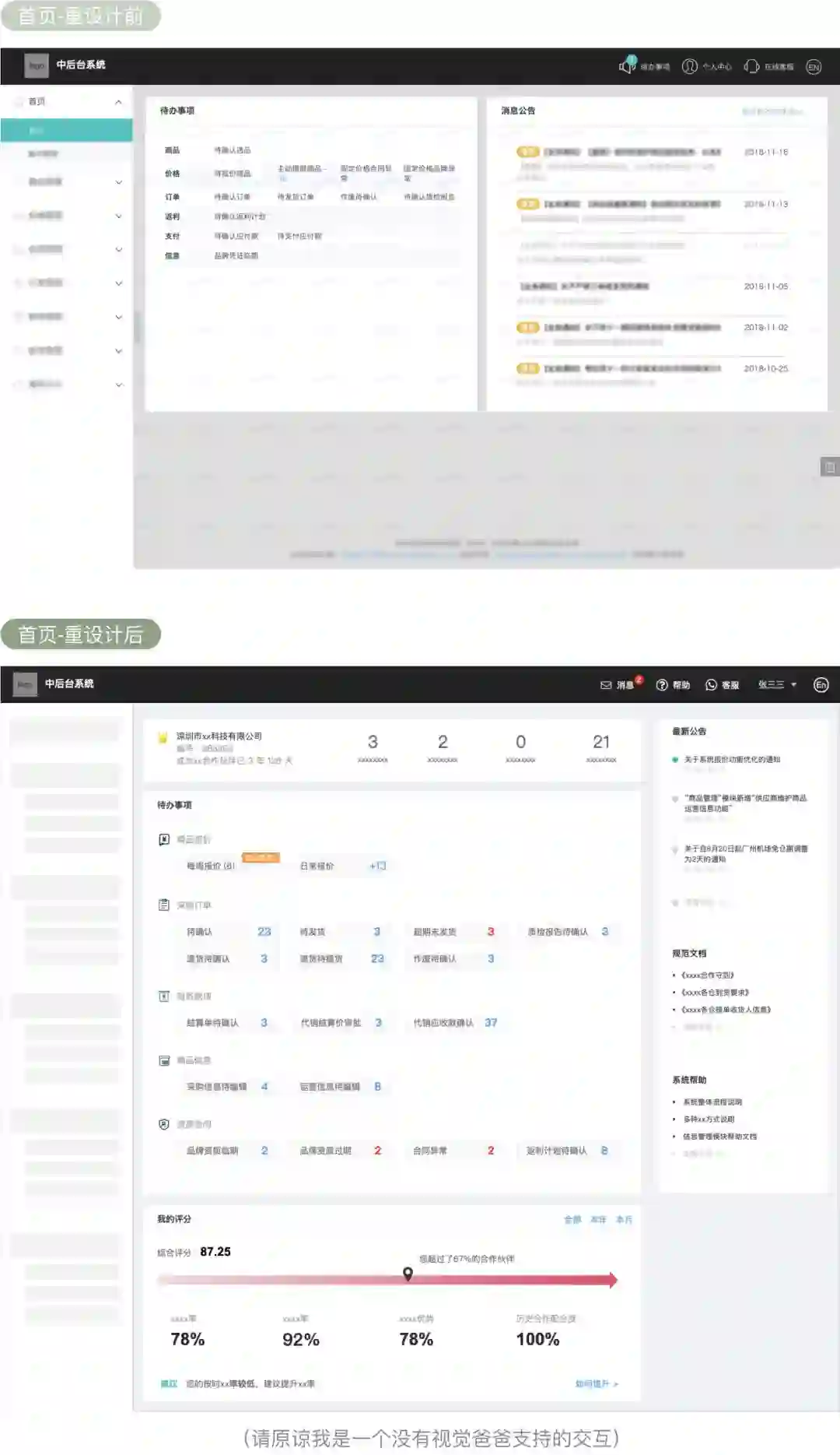 中后台系统会有非常多的流程协作功能,但是之前系统的做法仅仅是完成了流程的「功能」,却没有照顾到用户的「心理」,没有告知用户每个流程应有的节点、规范、当前进度。用户在等待流程推进的时候仿佛进入了一个黑箱,不知道现在的进度如何也不知道什么时候会完成,不仅是体验不好,而且会浪费大量的人力、资源在沟通流程进度上。