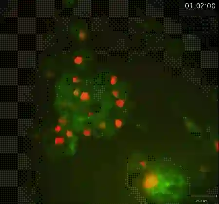 红色是脂肪细胞,绿色是分泌的抗菌肽