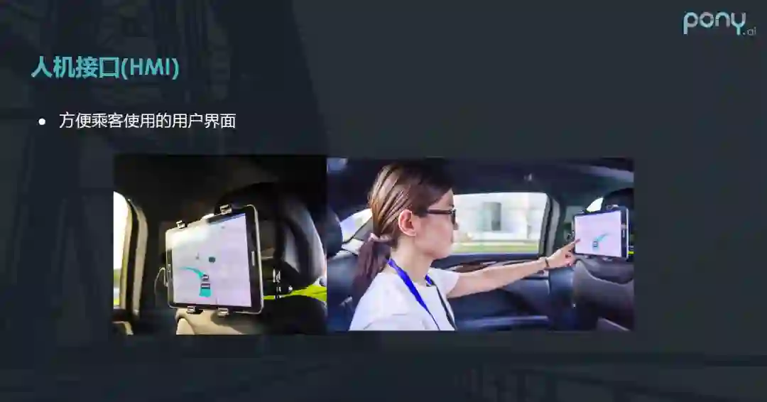 方便乘客使用的用户界面,同时可以看到自动驾驶是如何了解世界,如何做决策,如何规划之后的行为等等,给乘客更多的信息和信任。