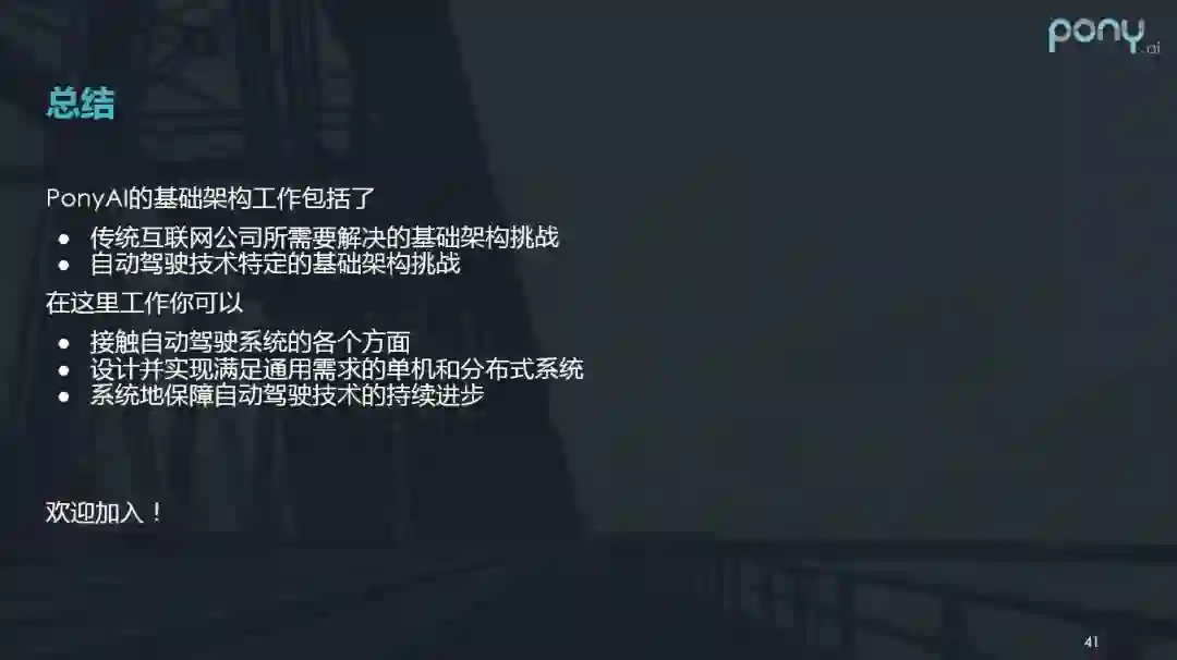 导读:本次分享的主题为打造最可靠的自动驾驶基础架构。主要内容包括如何做 Pony.ai 自动驾驶系统的基础架构,涉及到的技术困难,以及我们是如何克服的。
