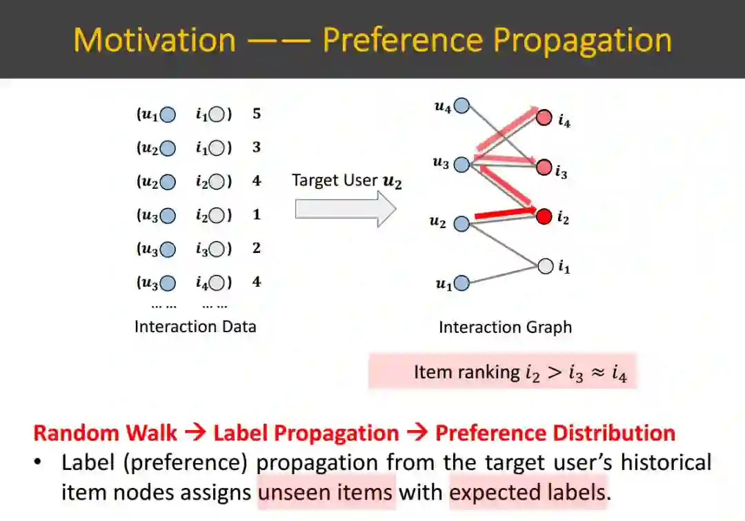 推荐系统方法构造预测模型来估计用户-项交互的可能性。以前的模型大多遵循一种普遍的监督学习模式--将每个交互看作一个单独的数据实例,并根据“信息孤岛”进行预测。然而,这些方法忽略了数据实例之间的关系,这可能导致性能不佳,特别是在数据稀疏的情况下。此外,建立在单独数据实例上的模型很难展示推荐背后的原因,这使得推荐过程难以理解。