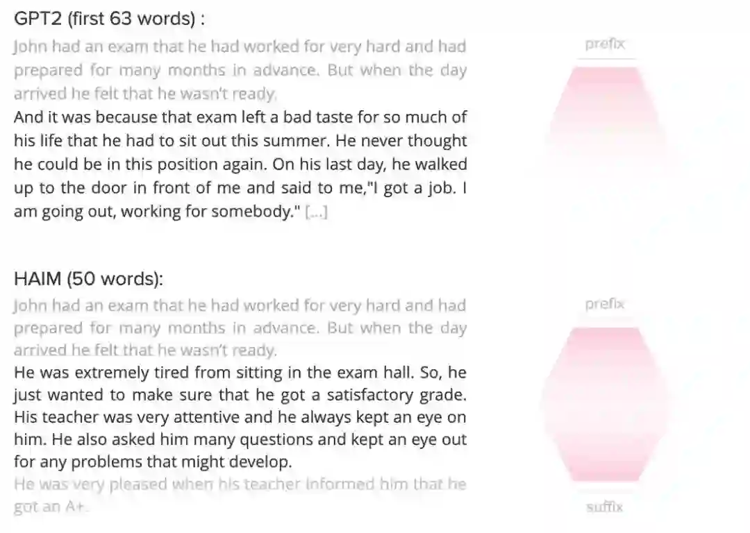 HAIM 的名字也是自己起的。研究人员输入开头「The team needed a name. The best suggestion...」(这个团队需要一个名字,最佳建议是……)和对应的结尾「...everybody agreed it was a great name for a state-of-the-art natural language generator.」(……每个人都认为这对当前最优的自然语言生成器而言是一个绝佳的名字)。然后模型提出了「HAIM」,研究者对这个缩略词进行了逆向工程,得到了「Halfway Acceptable Interpolating Machine」。(Shoham 博士称其为「玩笑式的事后合理化」。)