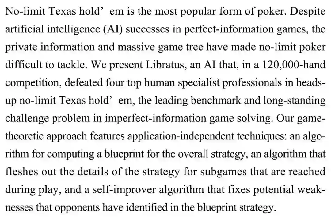 【Computer science-计算机科学】Superhuman AI for heads-up no-limit poker: Libratus beats top professionals