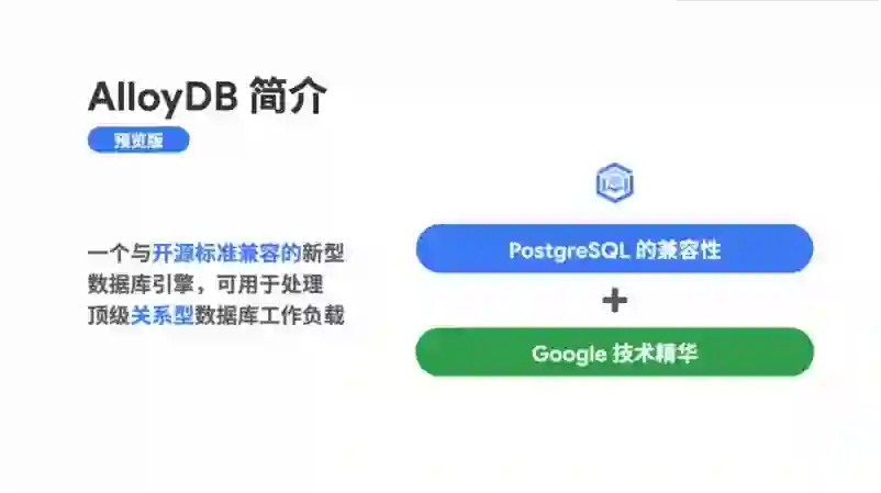 AlloyDB(预览版)是一种 PostgreSQL 兼容的数据库云服务。它是一个与开源标准兼容的新型数据库引擎,可用于处理顶级关系型数据库工作负载。AlloyDB 结合了 Google 的技术精华和最受欢迎的开源数据库引擎之一 PostgreSQL,可提供卓越的性能、扩缩能力和可用性。