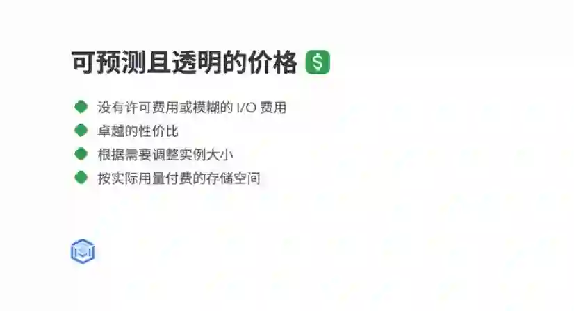 可预测且透明的价格:价格透明且可预测,没有昂贵的限制性许可费用和模糊的 I/O 费用。