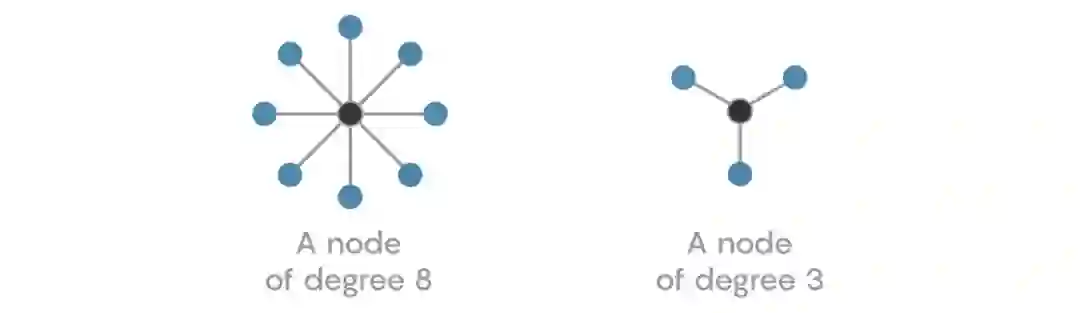 在网络中,一个节点的连接数被称为节点的“度”。一个度数高的节点会与更多的其他节点相连,度数低的节点会与更少的节点相连。