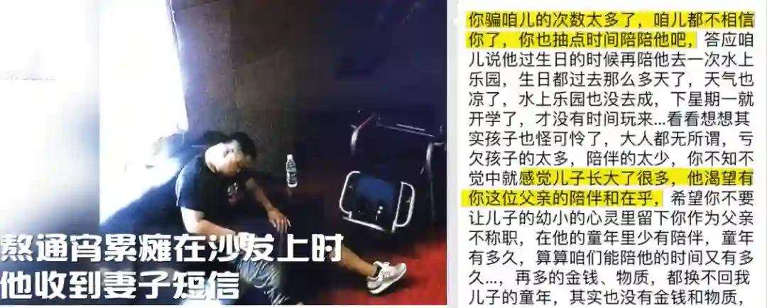 “你骗咱儿的次数太多了,咱儿都不相信你了,你也抽点时间陪陪他吧。