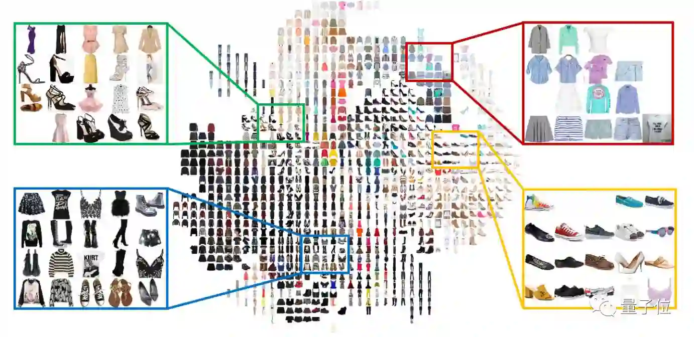 之后,研究人员用t-SNE算法将1024维的服装特征嵌入2D空间。
