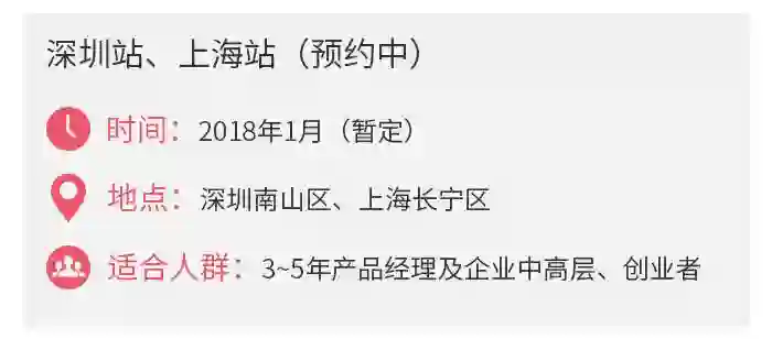 怎样练就产品总监必备的知识能力呢?2018年1月,4位产品界资深大咖将在上海、深圳和大家见面,利用2天的密集式学习,教给大家产品总监必备的4大知识能力体系,帮助大家突破职业晋升瓶颈,向产品总监进阶。