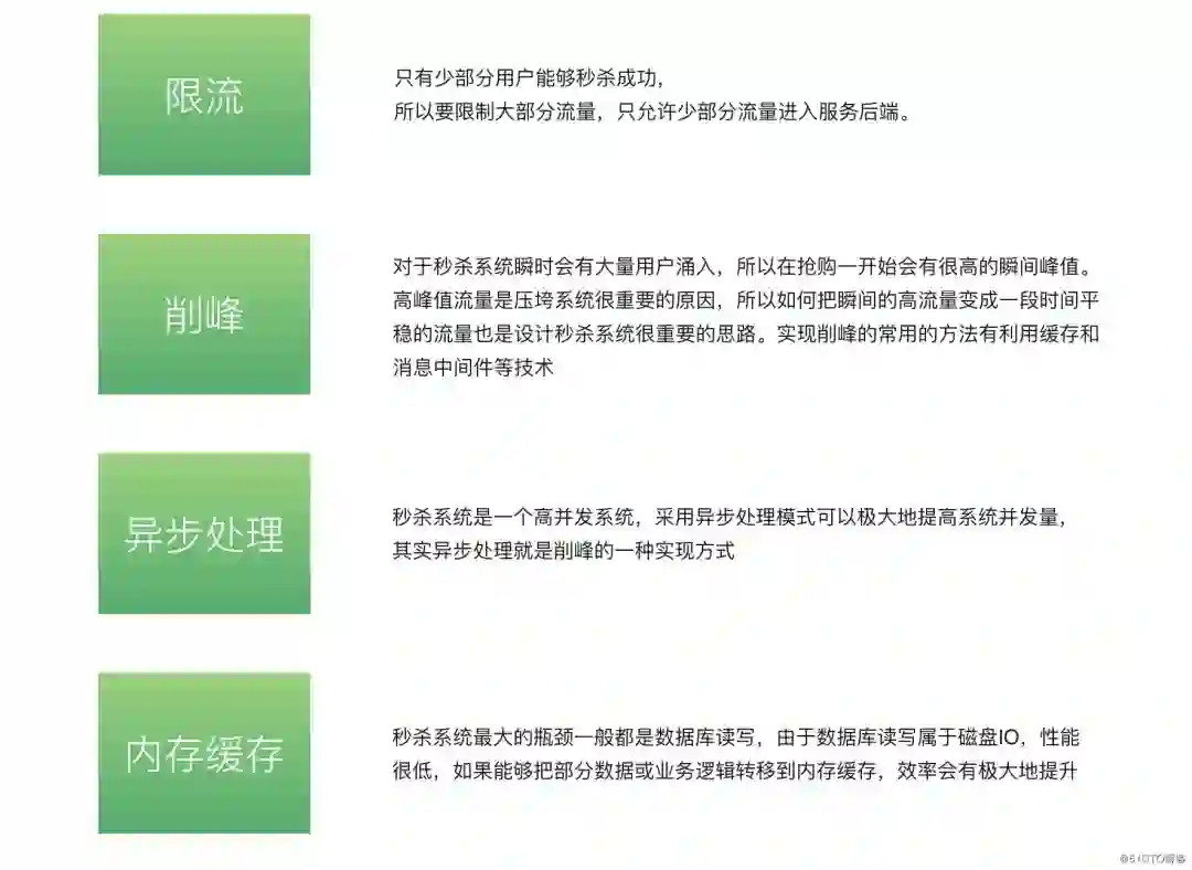 秒杀系统核心在于层层过滤,逐渐递减瞬时访问压力,减少最终对数据库的冲击。通过上面流程图就会发现压力最大的地方在哪里?
