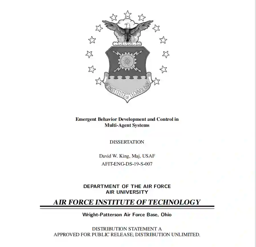 便捷下载,请关注专知人工智能公众号(点击上方蓝色专知关注) 后台回复“MAS195” 就可以获取《【博士论文】《多Agent系统中的突现行为开发和控制》美国空军技术学院195页》 专知下载链接