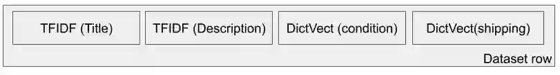当准备下一版预测方法时,我们在回顾商品清单发布流程后,确定模型的关键特征至少需包含:产品名称、产品描述(自由文本)、类别和品牌。当然,这些数据需经清洗和整理才能用于我们的项目。项目 ETL (抽取转化加载。即 Extract, Transform and Load)部分的软件栈基于 scipy、pandas、numpy 和 scikit-learn。在确定特征后,下面我们对数据进行矢量化。