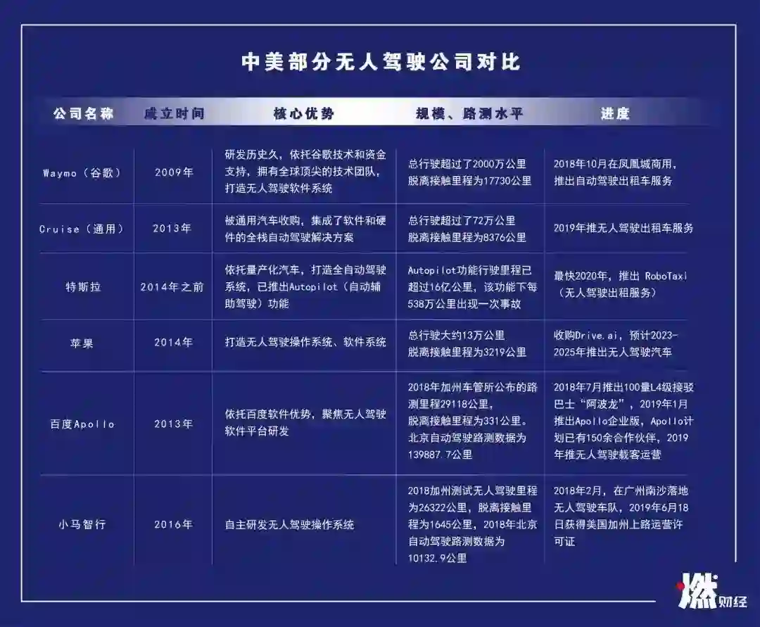 国内外无人驾驶企业对比