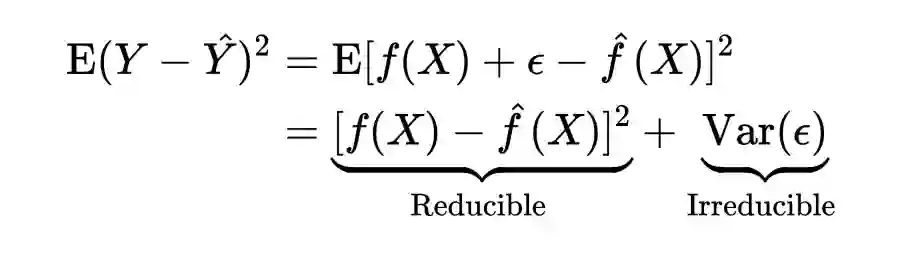 很容易发现,总的误差被分为了两部分:一部分是可消除的误差,这部分误差来源于模型与真实数据之间的关系,模型拟合数据好自然这部分误差就小;而另一部分则是不可消除的误差,来源于随机误差。训练模型的过程,就是寻找一个能将可消除误差降到最低的模型。