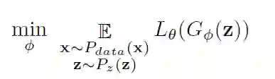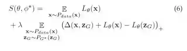 这里注意到,在公式S(θ,φ*)中,对L-函数的学习目标 S中的第二项,它是以真实样本x和生成样本的一个度量△(x,zG)为各自L-函数的目标间隔把x和zG分开。