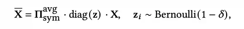图随机神经网络是图神经网络的一致性正则化框架,优化不同增强中未标记节点的预测一致性,通过随机传播来增强数据。首先对特征矩阵进行扰动,之后通过混合顺序的矩阵在图上传播。图随机神经网络使用平均池化的矩阵来传播: