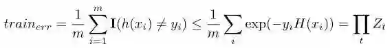 也就是说,Adaboost最终模型的训练误差上界可以