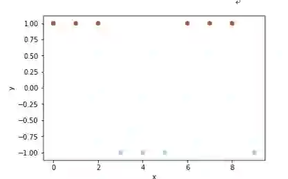 知道了Adaboost算法的执行过程,我们先来找个实际的例子来实现一下,毕竟在实践中学习更有利于我们对算法的理解。为了清楚的展示Adaboost的计算过程,我们利用李航老师《统计学习方法》中的例8.1的数据来实现,也方便大家与书上作比较。