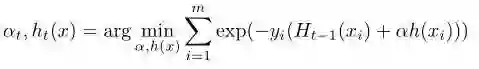 根据H(x)的定义,通过优化上式,我们可以得到第t轮迭代时最优的α和h(x):