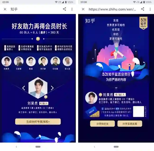 此外,知乎还推出了一个「好友助力」的活动,生成二维码海报后,如果朋友通过扫码购买了年费会员,那么你的会员资格会再叠加 60 天;以最多六人计算,可延长 360 天。