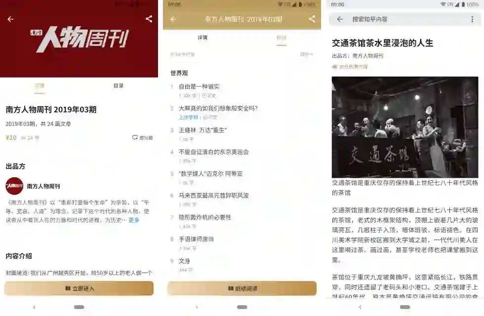 知乎中的杂志内容都经过了重新排版,阅读体验接近微信的公众号,除了图片注释的处理稍有瑕疵,基本上没有特别大的缺点。