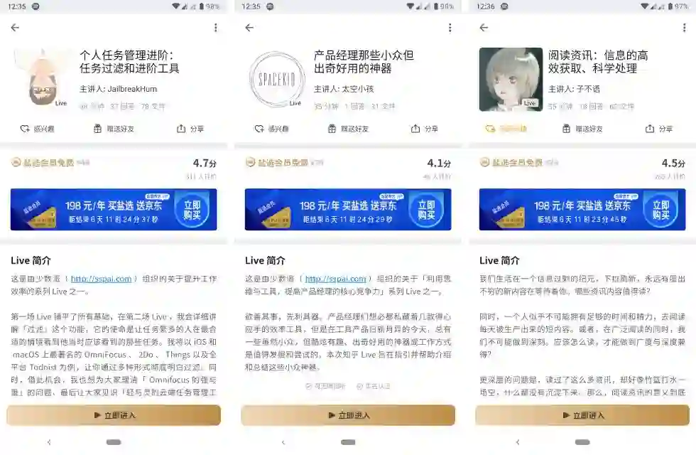 对了,Live 是目前所有「知识付费」项目中,唯一提供了网页版支持的。