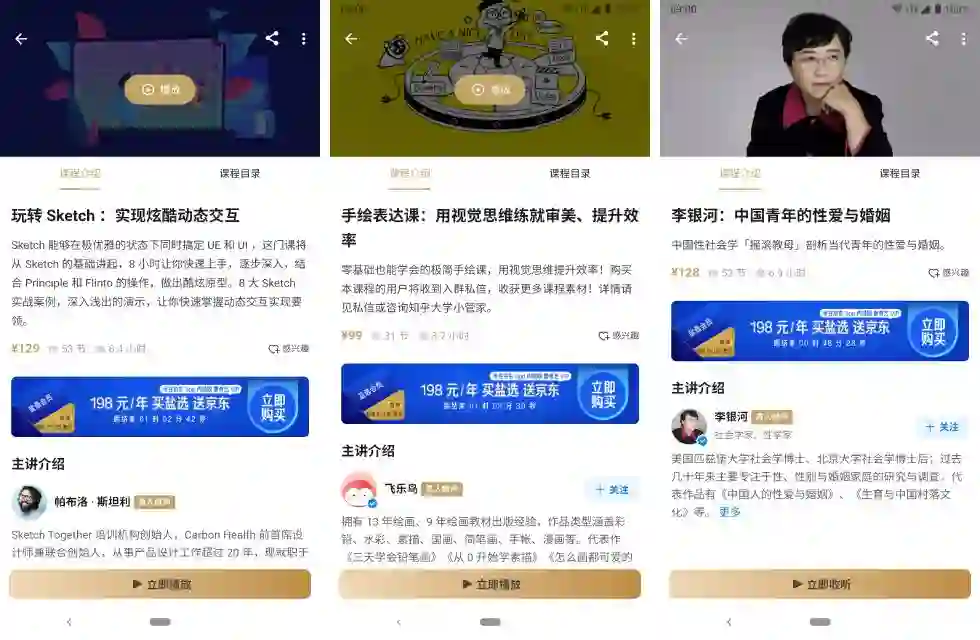 正如其名,「私家课」就是一系列的音频以及视频课程,课程以小节计算,内容比 Live 之类要丰富很多;当然,很多课程的标价也要贵上不少。